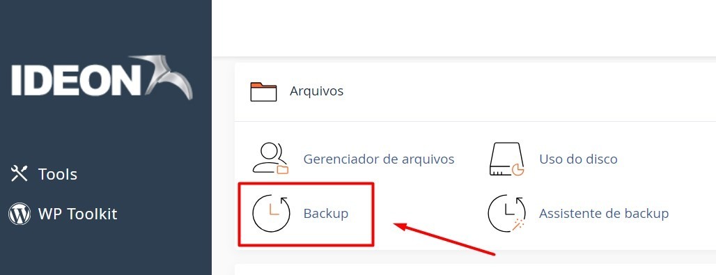 Acesse sua conta no cPanel e clique no ícone BACKUP.