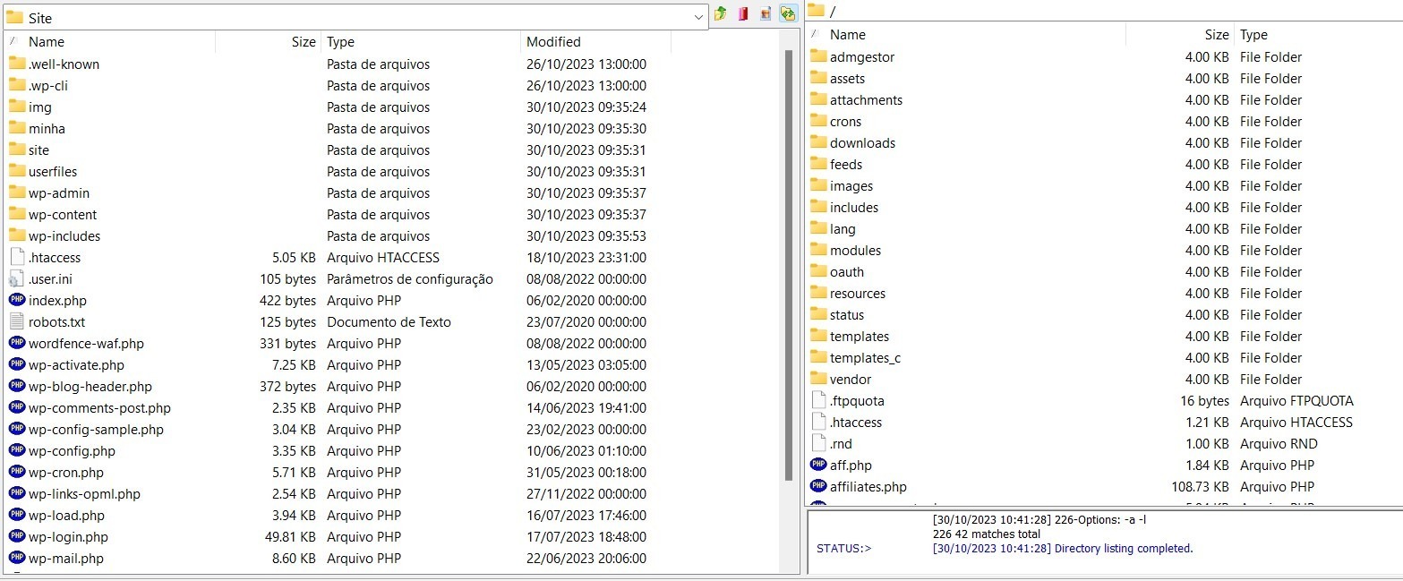 Ao conectar o FTP, você poderá baixar todos os arquivos da sua conta do servidor em seu PC localmente.