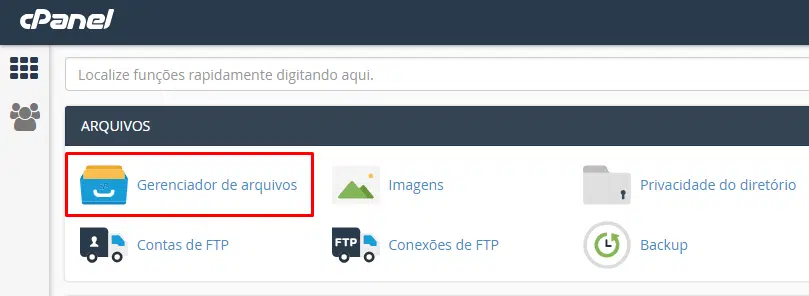 Antes de tudo, você precisa fazer login no cPanel da sua conta de hospedagem. Depois disso, encontre e abra a ferramenta Gerenciador de Arquivos.