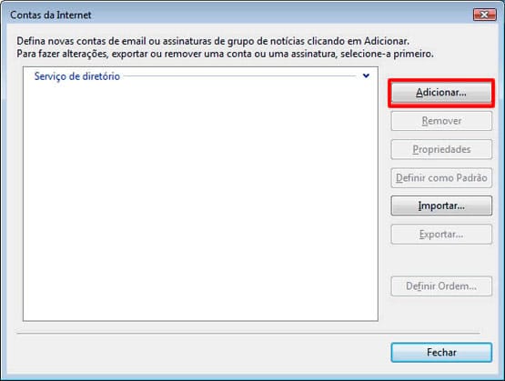 Na tela Contas na Internet, clique no botão “Adicionar”.