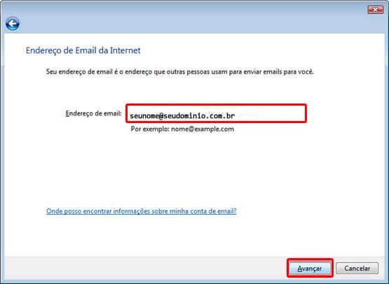 No campo Endereço de email informe o e-mail completo, clique no botão “Avançar”.