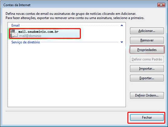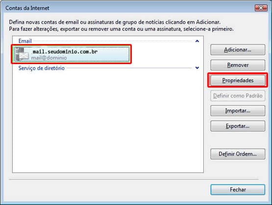 Aparecerá a conta que acabamos de criar. Clique sobre ela e clique no botão “Propriedades”.